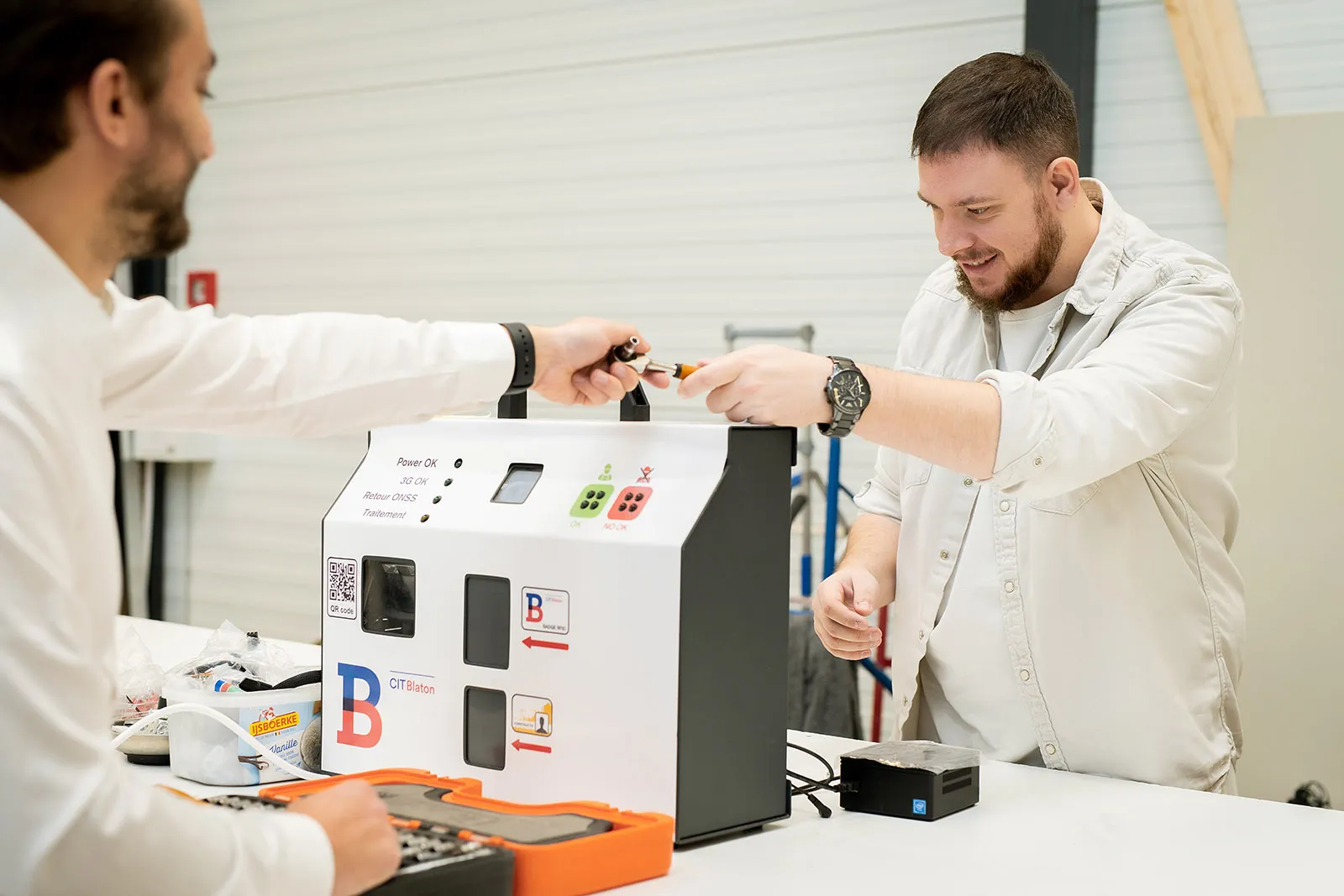 L’univers digital et des logiciels sur mesure font partie de l’ADN d’APKiosk. Alain Préat, gérant, est littéralement tombé dedans dès la fin de ses études. De client en client, il développe des solutions adaptées et innovantes. Une rencontre lui fait prendre un nouveau tournant. En 2013, il crée APKiosk où il intègre la technologie d’un logiciel adaptés à la robustesse d’un « kiosque » métallique. La société s’adresse alors aux chantiers de construction avec une borne interactive permettant d’envoyer le pointage ONSS des ouvriers en temps réel, grâce à une connexion 3G. Ce succès nous permet de créer notre première marque : APWork.